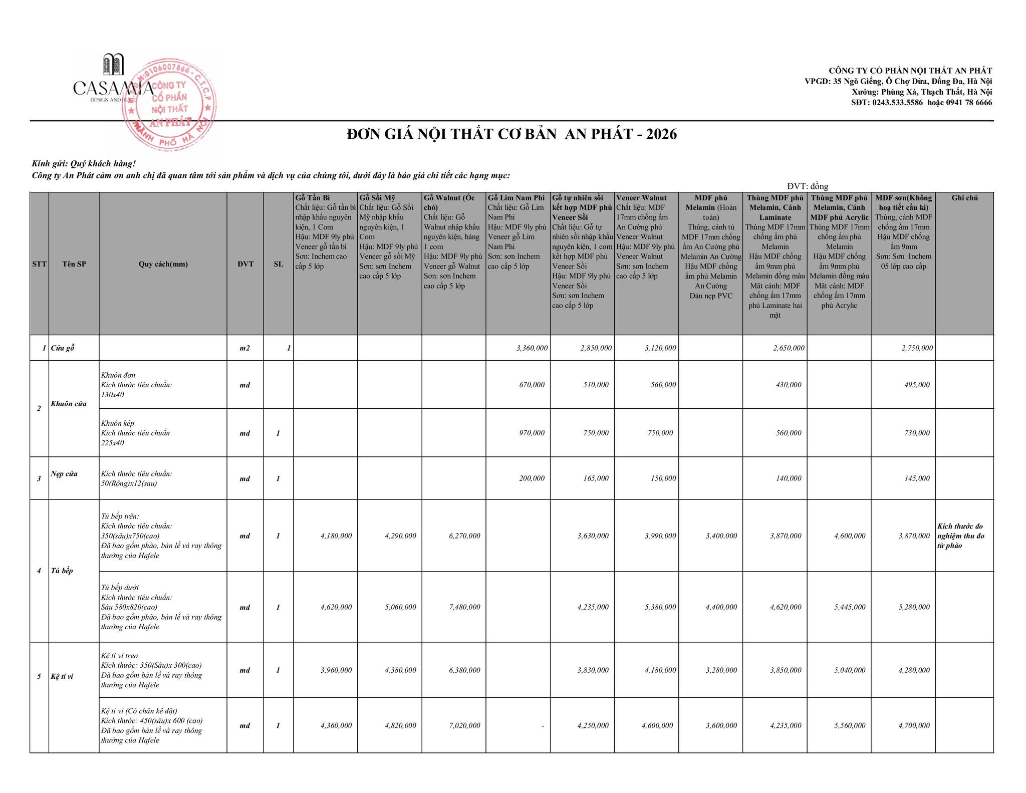 - Giá trên chưa bao gồm thuế VAT 10% và phí giám sát thi công.