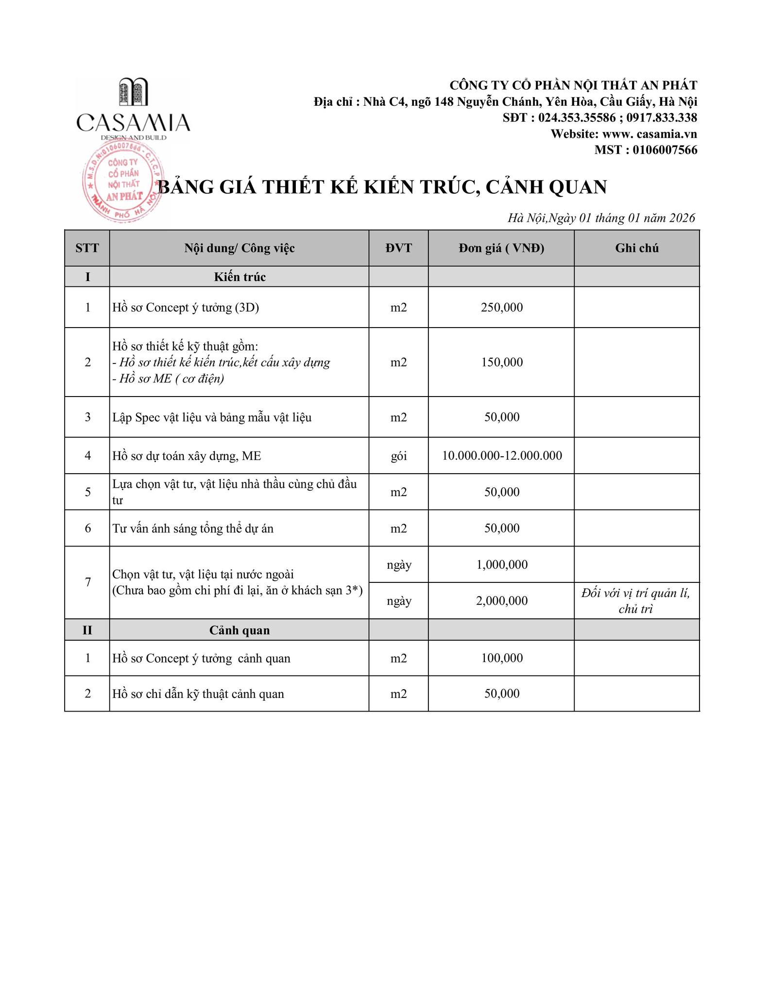 Bảng báo giá dưới đây sẽ giúp quý khách hàng có cái nhìn rõ ràng, chi tiết về chi phí thiết kế cho từng loại hình công trình – từ căn hộ, nhà phố, biệt thự đến các không gian thương mại như văn phòng, showroom hay khách sạn. Đồng thời, đây cũng là cánh cửa mở ra hành trình kiến tạo không gian sống lý tưởng – nơi mỗi góc nhỏ đều kể một câu chuyện tinh tế mang đậm dấu ấn Casamia.